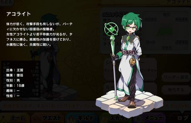 | 名稱 | アコライト(風・男) | 出身 | 王国 | ||