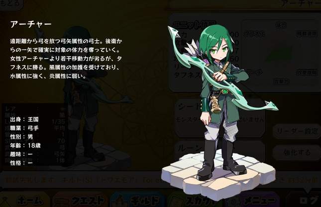 | 名稱 | アーチャー(風・男) | 出身 | 王国 | ||
