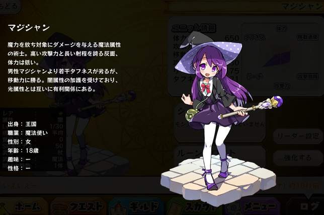 | 名稱 | マジシャン(闇・女) | 出身 | 王国 | ||