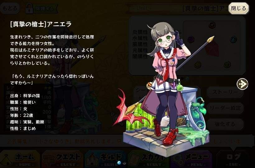 | 名稱 | 真誠長槍手阿尼耶拉 | 出身 | 科学の国 | ||