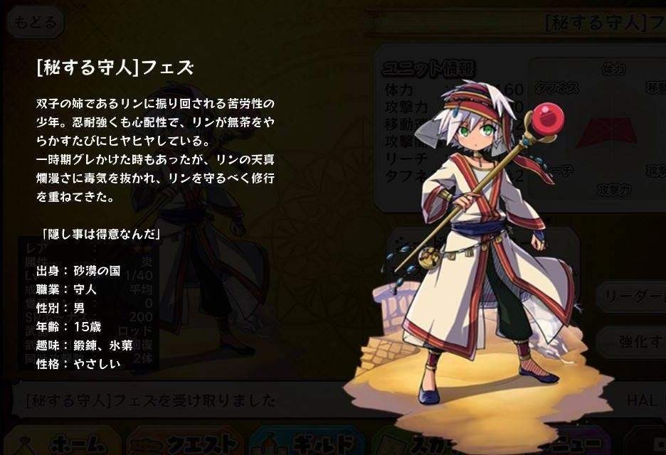 | 名稱 | 保密的守護者菲斯 | 出身 | 砂漠の国 | ||