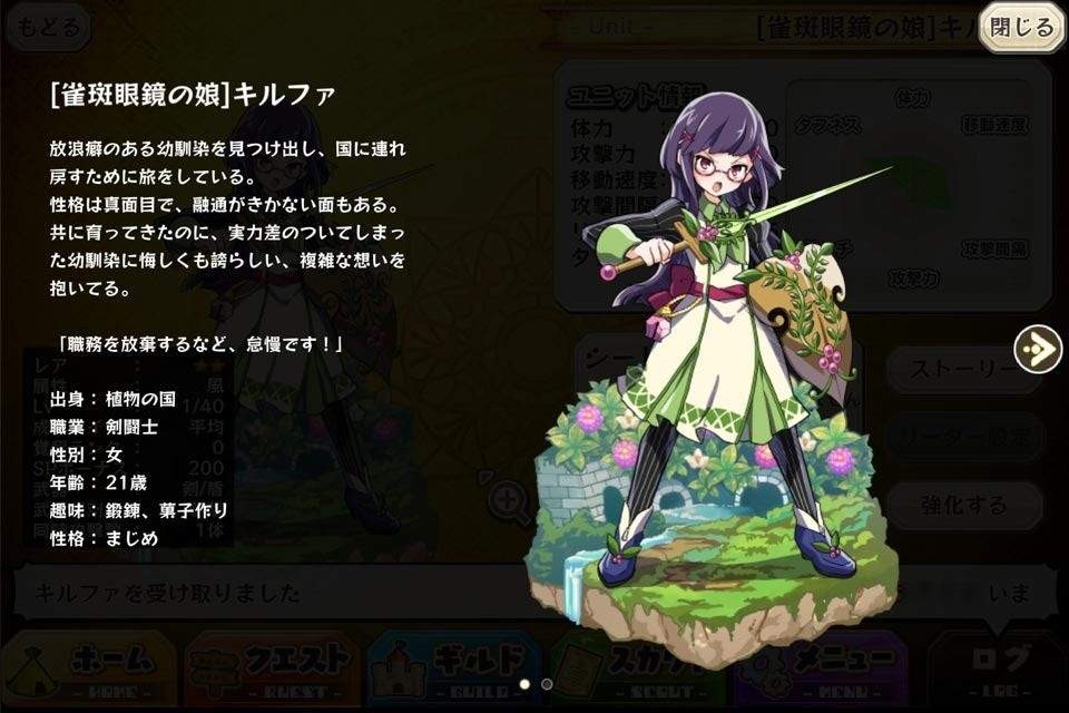 | 名稱 | 「雀斑眼鏡の娘」キルファ | 出身 | 植物の国 | ||