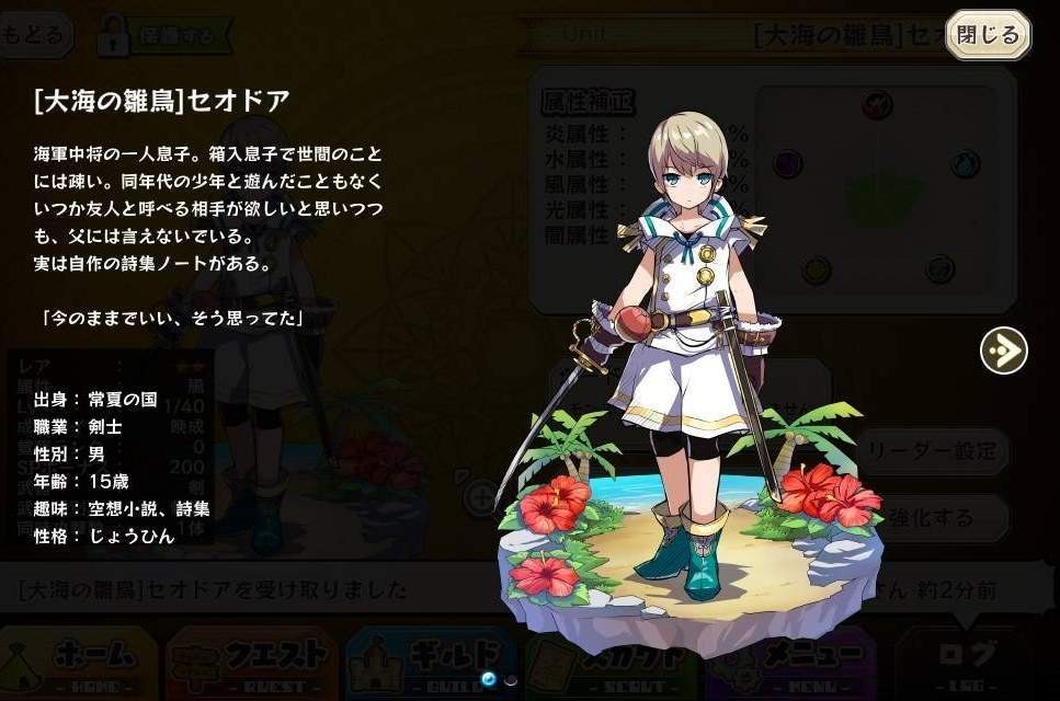 | 名稱 | 「大海の雛鳥」セオドア | 出身 | 常夏の国 | ||