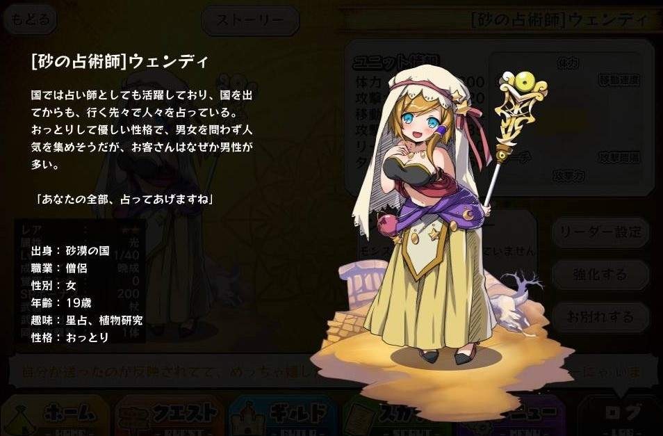 | 名稱 | 沙子占卜師溫蒂 | 出身 | 砂漠の国 | ||