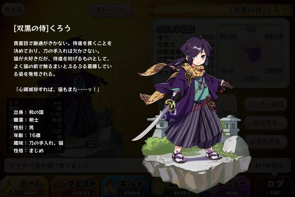 | 進化後 | 「疾黒迅斬の侍」くろう | ||||