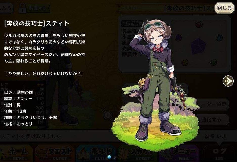 | 名稱 | 奔放自由的技師斯提多 | 出身 | 動物の国 | ||