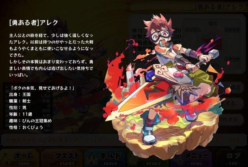 | 進化後 | 「見習い大剣士」アレク | ||||