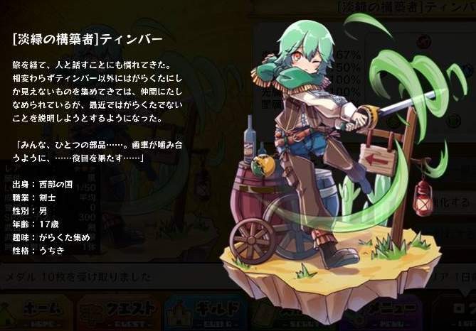 | 名稱 | 綠衣的構築者汀巴 | 出身 | 西部の国 | ||