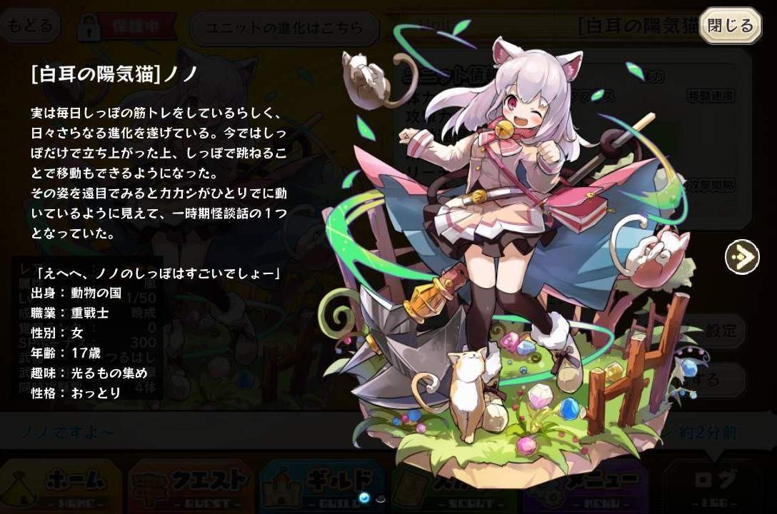 | 名稱 | 「白耳の陽気猫」ノノ | 出身 | 動物の国 | ||