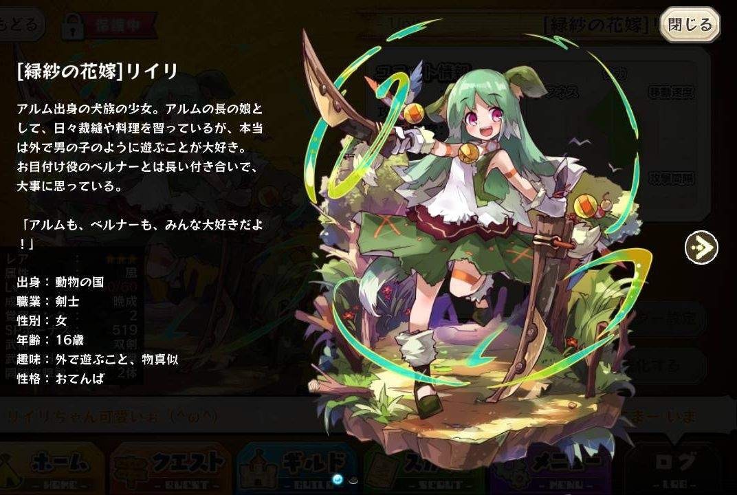 | 名稱 | 綠紗的新娘莉伊莉 | 出身 | 動物の国 | ||