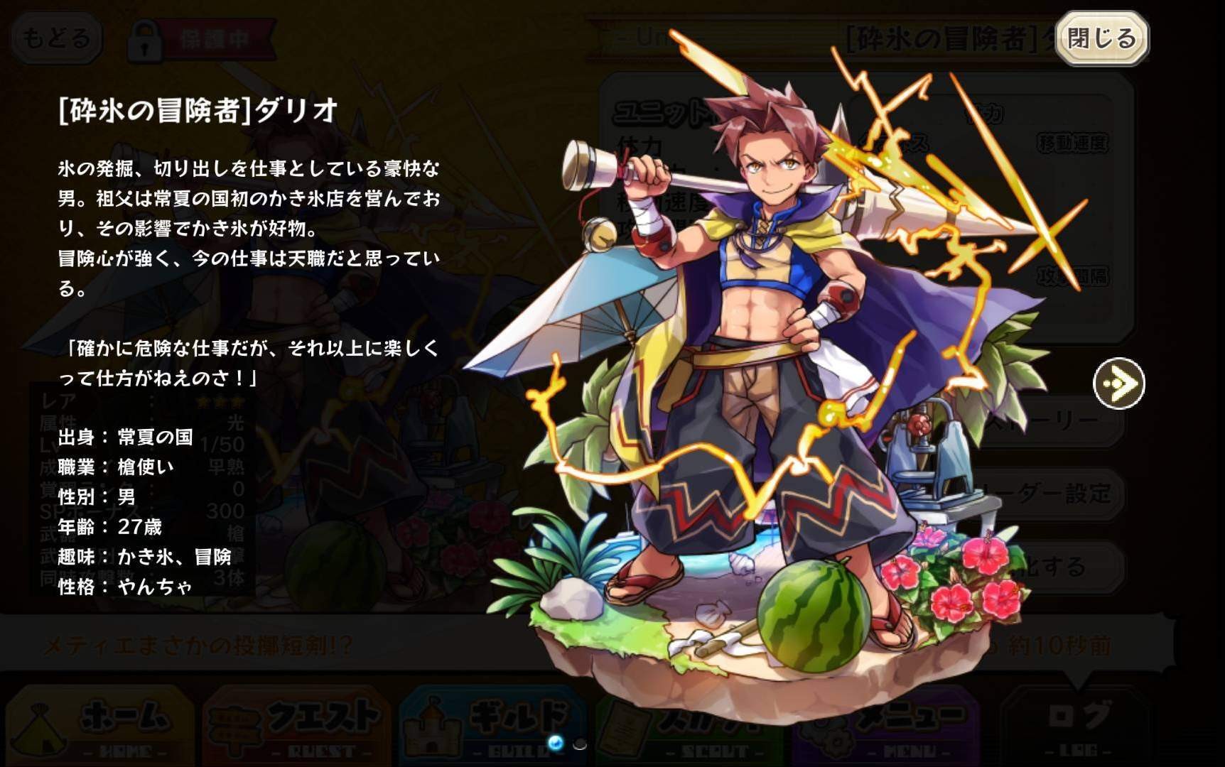 | 名稱 | 「砕氷の冒険者」ダリオ | 出身 | 常夏の国 | ||