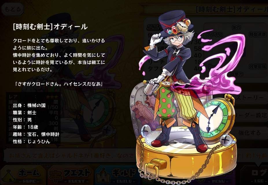 | 名稱 | 在意時間的劍士奧迪爾 | 出身 | 機械の国 | ||