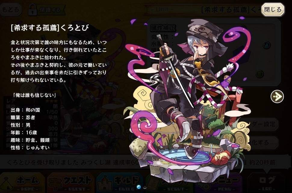 | 名稱 | 「希求する孤鳶」くろとび | 出身 | 和の国 | ||