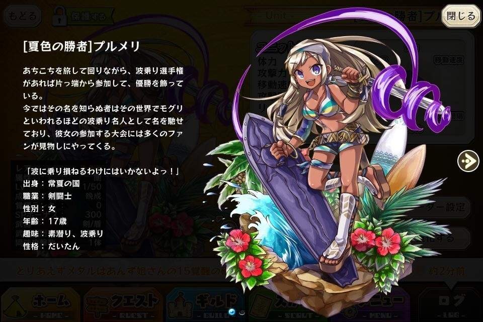 | 入手方式 | 「夏色の剣闘士」プルメリをレベル40にし | ||||