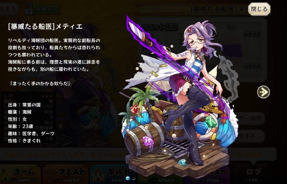 | 名稱 | 「暴威たる船医」メティエ | 出身 | 常夏の国 | ||