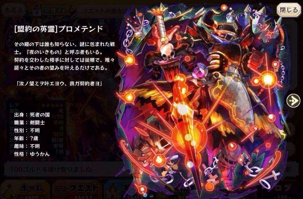 | 名稱 | 「盟約の英霊」プロメテンド | 出身 | 死者の国 | ||