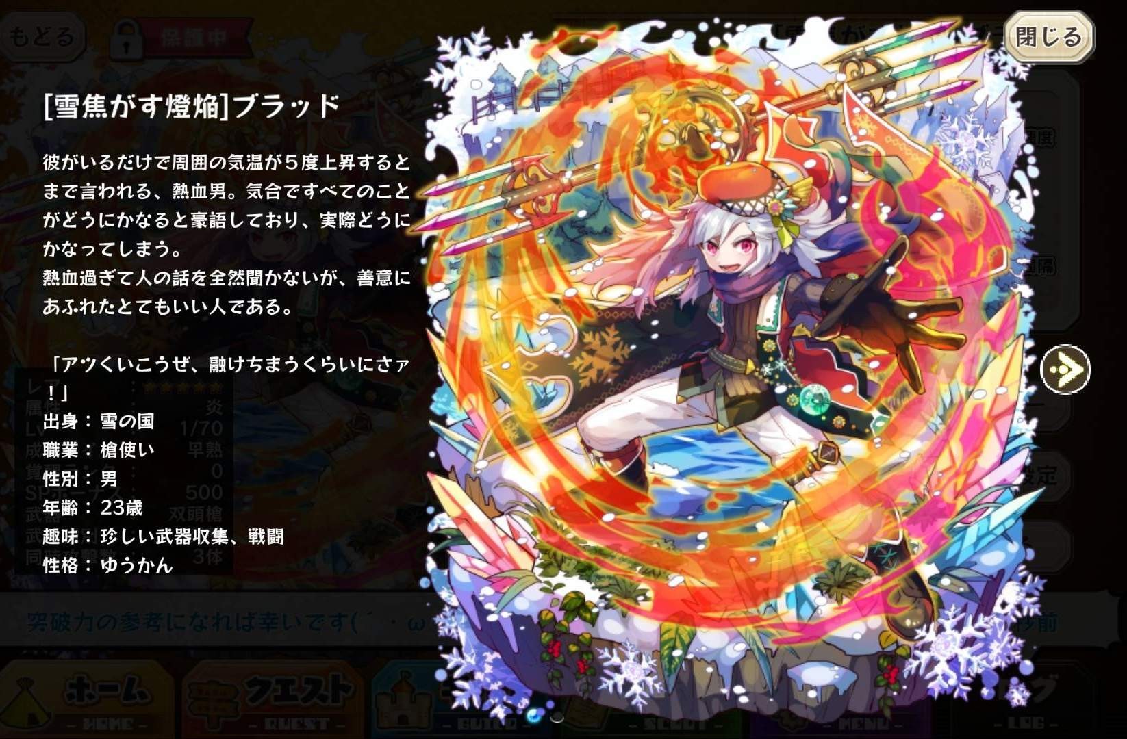 | 名稱 | 「雪焦がす燈焔」ブラッド | 出身 | 雪の国 | ||