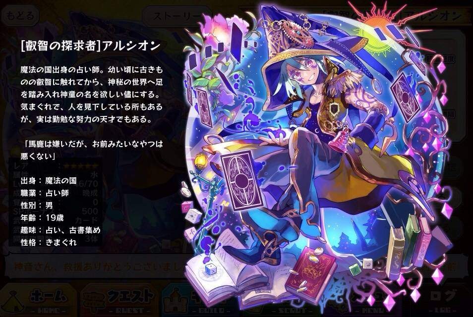 | 名稱 | 睿智的探求者阿爾西恩 | 出身 | 魔法の国 | ||