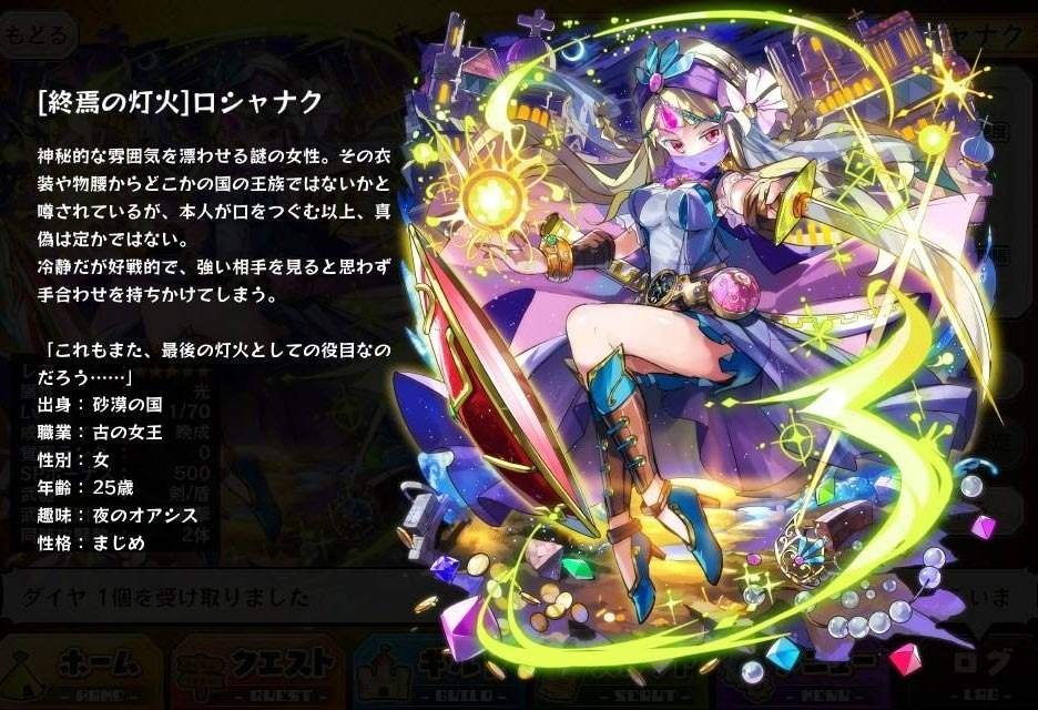 | 名稱 | 臨終的燈火羅夏娜客 | 出身 | 砂漠の国 | ||