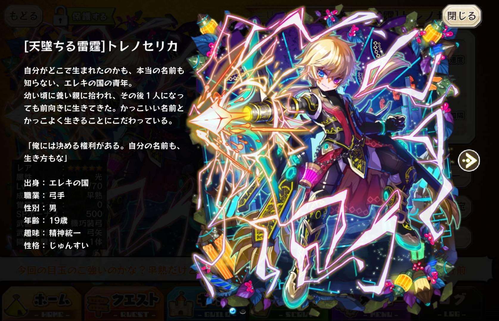 | 名稱 | 「天墜ちる雷霆」トレノセリカ | 出身 | エレキの国 | ||