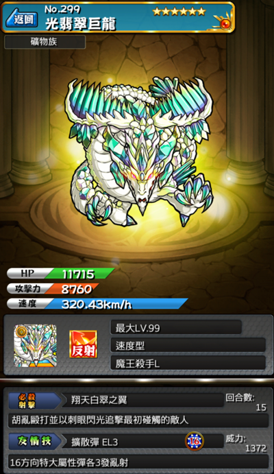 | 主動技 | 名稱 | 翔天白翠之翼 | 冷卻回合 | 15 回合 | ||