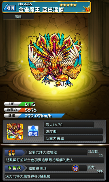 胡亂毆打並以金色羽彈追擊最初碰觸的敵人 |