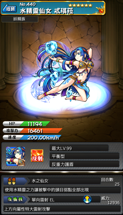 | 主動技 | 名稱 | 水之仙女 | 冷卻回合 | 25 回合 | ||