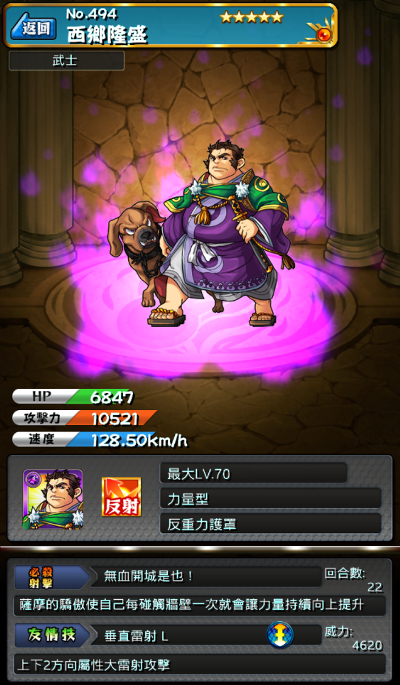 | 說明 | 薩摩的驕傲使自己每碰觸牆壁一次就會讓力量持續提升 | |||||