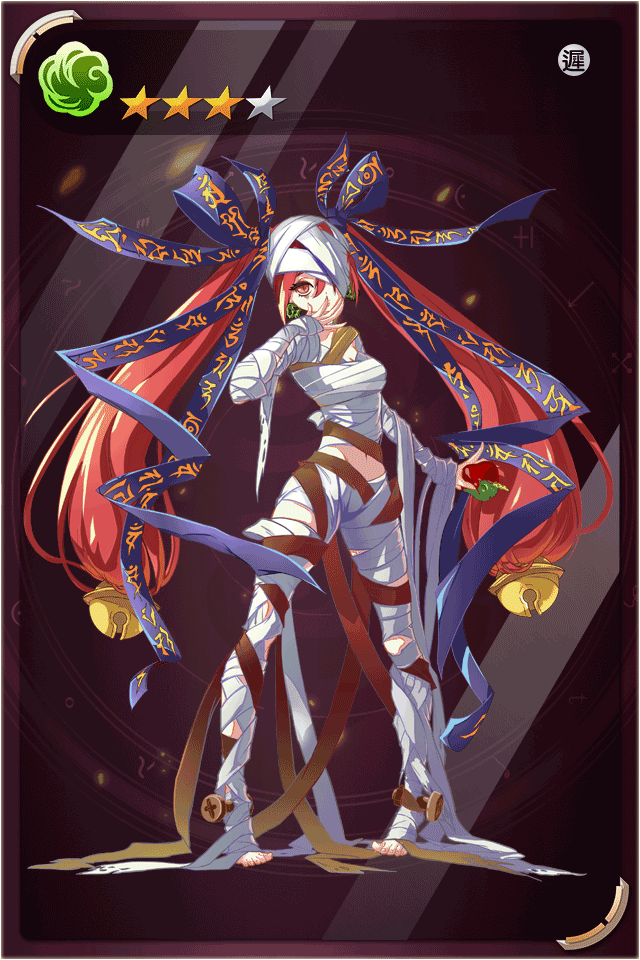 技能1 死亡鬼臉 主動魔娘技-較高機率釋放鬼臉毒氣攻擊敵方全體成員,技能威力70%