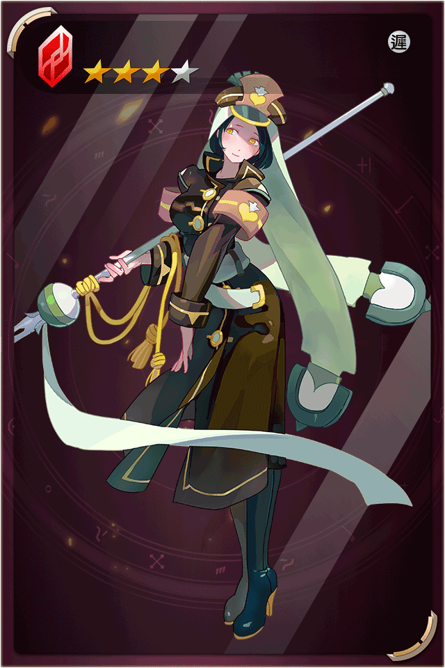 技能1 高等隱形法球 主動魔娘技-站在一號位時有機率釋放隱形法球攻擊敵方單名成員,技能威力160%