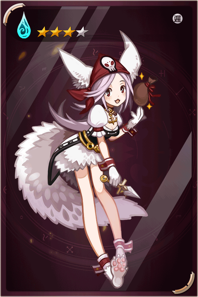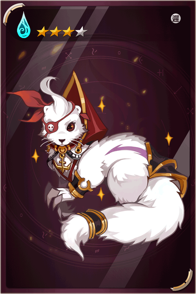 技能1 高等海盜之刃 主動魔娘技-施展海盜秘術攻擊敵方單名成員,技能威力170%,較低機率釋放