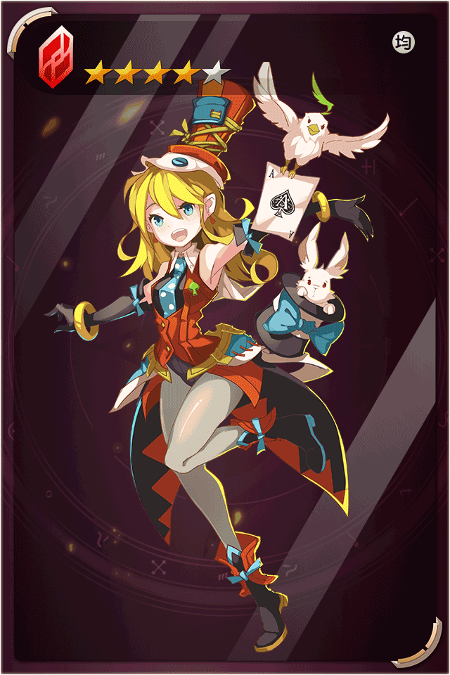 | 技能1 | 高等攝魂徽記 | 主動魔娘技-自身血量低於45%時較高機率釋放撲克徽記攻擊敵方單名成員,技能威力170% |