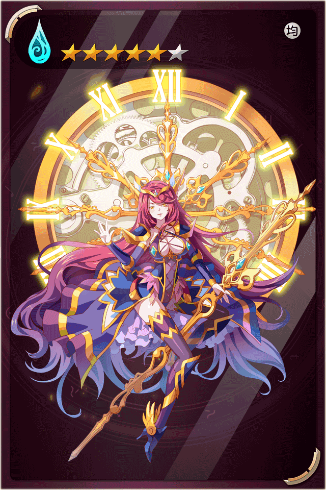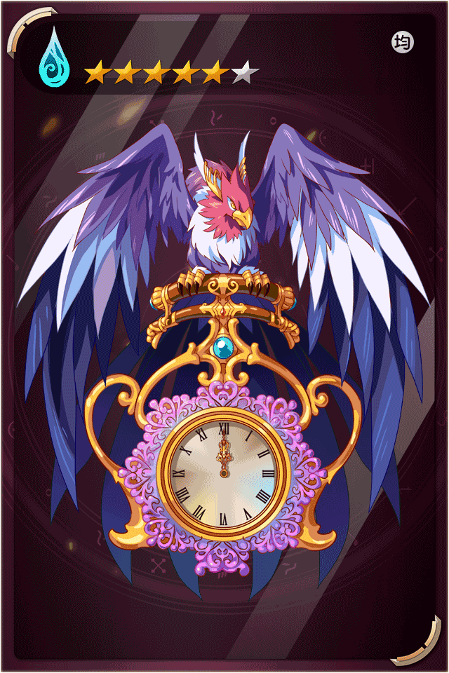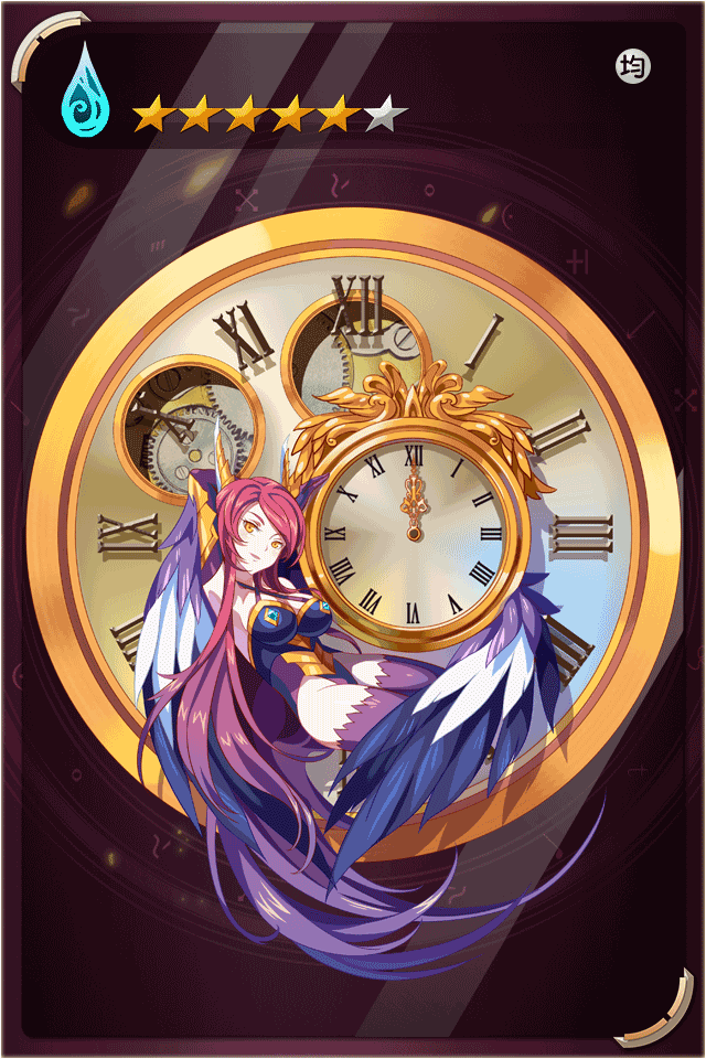 技能1 高等時間領主 主動魔娘技-時鐘炸彈攻擊敵方單名成員,技能威力130%,並降低對方攻擊力10%,中等機率釋放