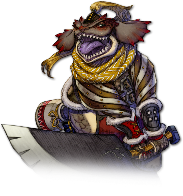| その二つ名の通り、大きな口が特徴的なトカゲ。そのせいか声が大きく鬱陶しい。また毎晩毎晩酒をがぶのみして恐ろしい額の食費が飛んで行く為、エンゲル係数エスカレータの異名をとる。歯を磨かないので口臭もひどい。だが良いところがひとつも無いかといえばそうでもない。その、あの…あれなんだけど、思い出せないのでいずれ誰かがきっと証言してくれると思う。 |