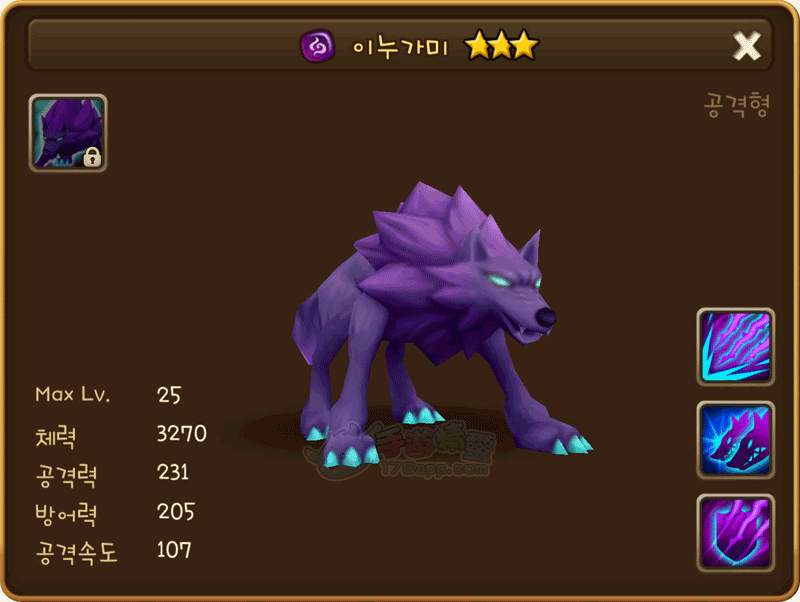 用巨大的利爪攻擊敵人,並以50%的概率在2回合內削弱敵人防禦力。