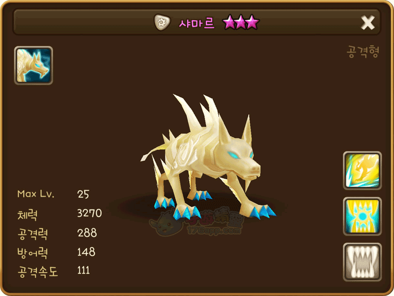 使用強大的下巴和銳利的牙齒攻擊敵人,並恢復造成傷害30%的體力。