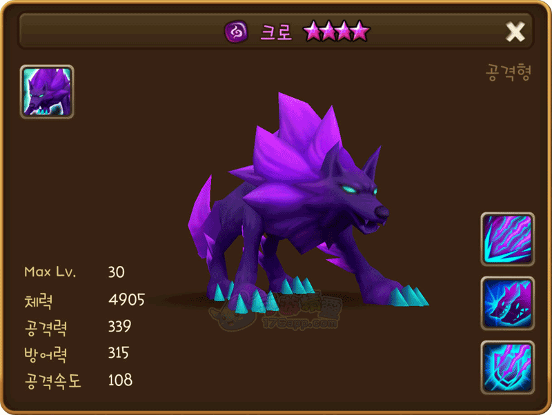 用巨大的爪子攻擊敵人,並以50%的概率降低防禦力,同時在3回合內造成持續傷害。