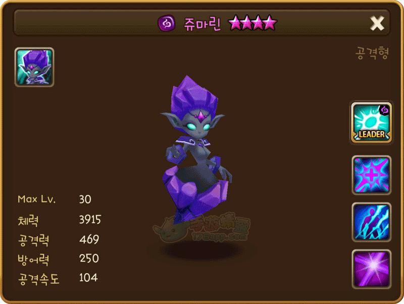 名稱 | 珍馬琳 | 屬性 | 暗屬性 | 類型 | 攻擊型 | 攻擊速度 | 104 |
