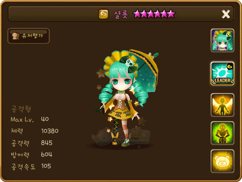 名稱 | 夏洛特 | 屬性 | 風屬性 | 類型 | 攻擊型 | 攻擊速度 | 105 |