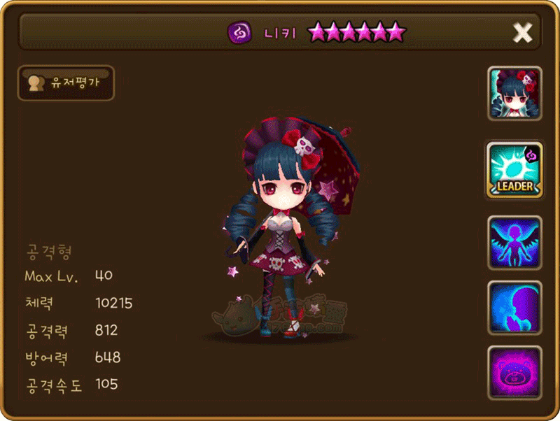 名稱 | 尼奇 | 屬性 | 暗屬性 | 類型 | 攻擊型 | 攻擊速度 | 105 |