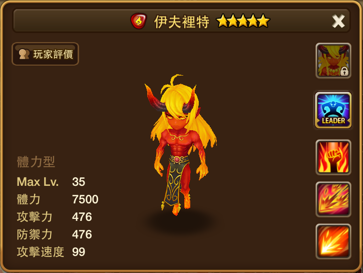 名稱 | 伊夫裡特 | 屬性 | 火屬性 | 類型 | 體力型 | 攻擊速度 | 99 |