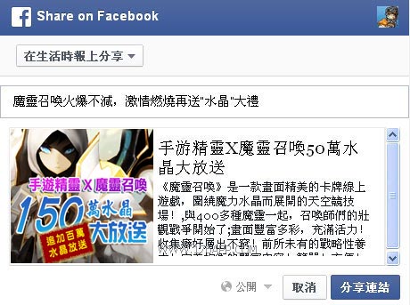 分享活動,並在內容寫上活動宣傳口號,例: