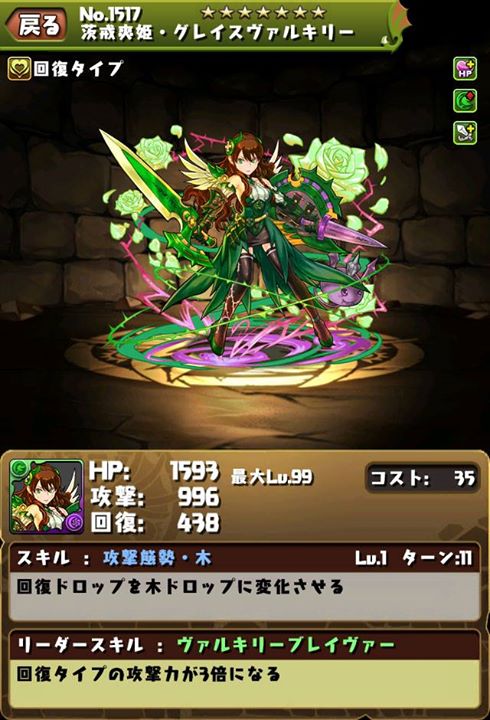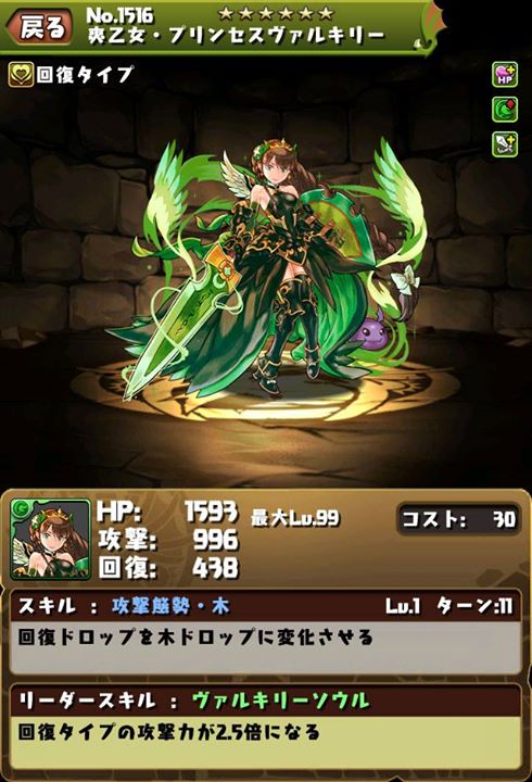 條件雖然嚴苛,但進化完成後將結合「豐收神・邪惡瑟列斯」「豐收神・神聖瑟列斯」的隊長技能,「覺醒宙斯・迪奧斯」「覺醒赫拉・帕奧古」的類型/覺醒技能,成為主類型「平衡」、副類型「惡魔」,隊長技為「木屬性與平衡型角色的攻擊變為 2.5 倍,光與暗屬性敵人對我方的攻擊損傷減半」,並擁有 8 個覺醒技能的強勁角色。