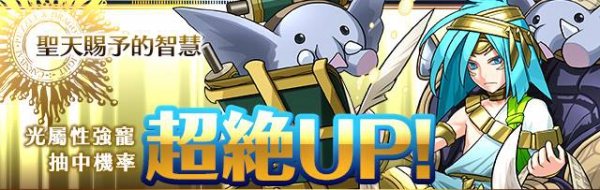 ★4~★6 的光屬性強寵 40 種的抽中機率超絕 UP!新登場的東洋神(第 2 彈)的「★5 葛內舍(ガネーシャ)」,及龍劍士系列的「★4 光之龍劍士」也將登場!此次活動的寵物詳情請參照日文官網頁面。