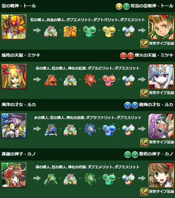 北歐神系列的「雷之戰神・索爾(雷の戦神・トール)」以及「焰尾天狐・美月(焔尾の天狐・ミツキ)」、「海洋才女・流華(海洋の才女・ルカ)」等 5 種女性角色將可以進行究極進化了。