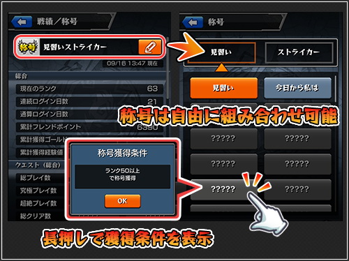 不同的稱號需要達成指定項目的挑戰才可獲得