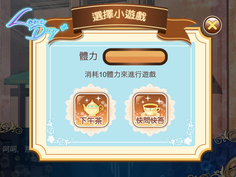 約會小遊戲又分為『下午茶約會』、『快問快答』兩種模式。進行小遊戲會消耗玩家的體力,體力可以透過邀請好友發送的『糖果』道具來恢復,因此玩家在攻略男主角劇情的同時,可別忘了新增幾名好友來獲得糖果哦!