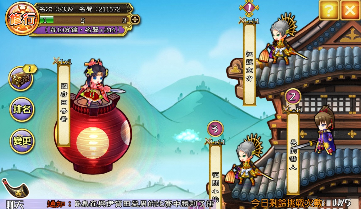 《戰國 GOGOGO》15 日公測正式啟動後即湧入許多的熱情玩家朋友,首週合戰開打盛況空前、戰國武將與合戰攻略成為了近期台港澳玩家之間的熱門遊戲話題;在遊戲中最多人互動較勁的「武道場」系統中每日皆有萬人以上的玩家爭奪排名、氣氛相當熱烈。
