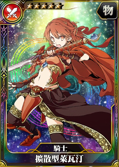 傳奇之劍萊瓦汀。這是運用特殊技術從甚至擁有如靈魂般物體的該劍抽出因子,用該因子製造出來的騎士。在因子的結構上,特別專精於燒斬。邊散放威力驚人的火焰邊揮劍的模樣,在不列顛的人們眼中驚為天人。似乎覺得在亞瑟旗下戰鬥很有意義。