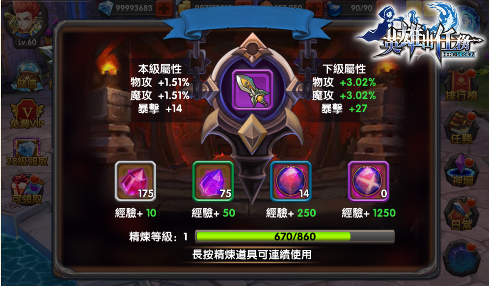 老是覺得裝備不夠威、戰力不夠強大嗎?自改版日起,《 英雄出任務 》全新推出「精煉系統」和「共鳴系統」,讓玩家們裝備強化無極限。